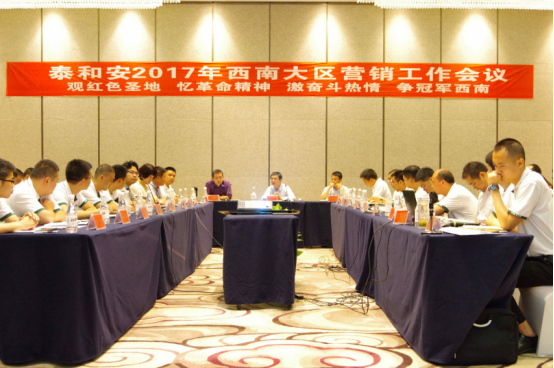 2017年6月11日~12日,以“觀紅色圣地、憶革命精神、激奮斗熱情、爭冠軍西南”為主題的“泰和安2017年西南大區(qū)營銷工作會議”在貴州遵義召開。